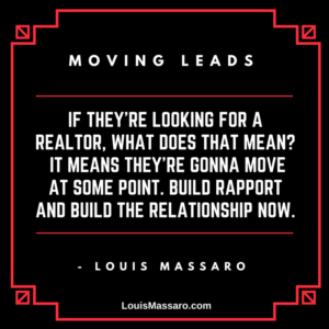Let’s say they’re looking for a realtor. “No, I wasn’t really looking for a moving company, I’m looking for a realtor”. If they’re looking for a realtor, what does that mean? It means they’re gonna move at some point. So, have some resources available. “Oh, what area are you looking for a mover in?” “Oh, I’m looking for a realtor.” What’d I say? Mover. “What are you’re looking for a realtor in?” and help them out. Hopefully have a few realtors that you’re working with and you are exchanging customers. They’re referring people to you, you can refer people to them. Say, “Listen, I already have your email here with the lead that we received. Why don’t I go ahead and send you an email with a couple of realtors that we highly recommend that we’ve heard do a really good job. And hopefully that helps you out, and when you’re ready to move, give me a call and I’ll definitely help you out, I’ll definitely take care of you on the price.” That customer is gonna be grateful. You didn’t just hang up the phone and say, “Well, we’re a full-service moving company. I don’t know why we have your number”. You went above and beyond, and at some point, they’re gonna move.