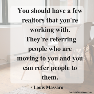 You can say something like: “What area are you looking for a realtor in?” and help them out. Hopefully, you have a few realtors that you’re working with and you are exchanging customers. They’re referring people to you, you can refer people to them.